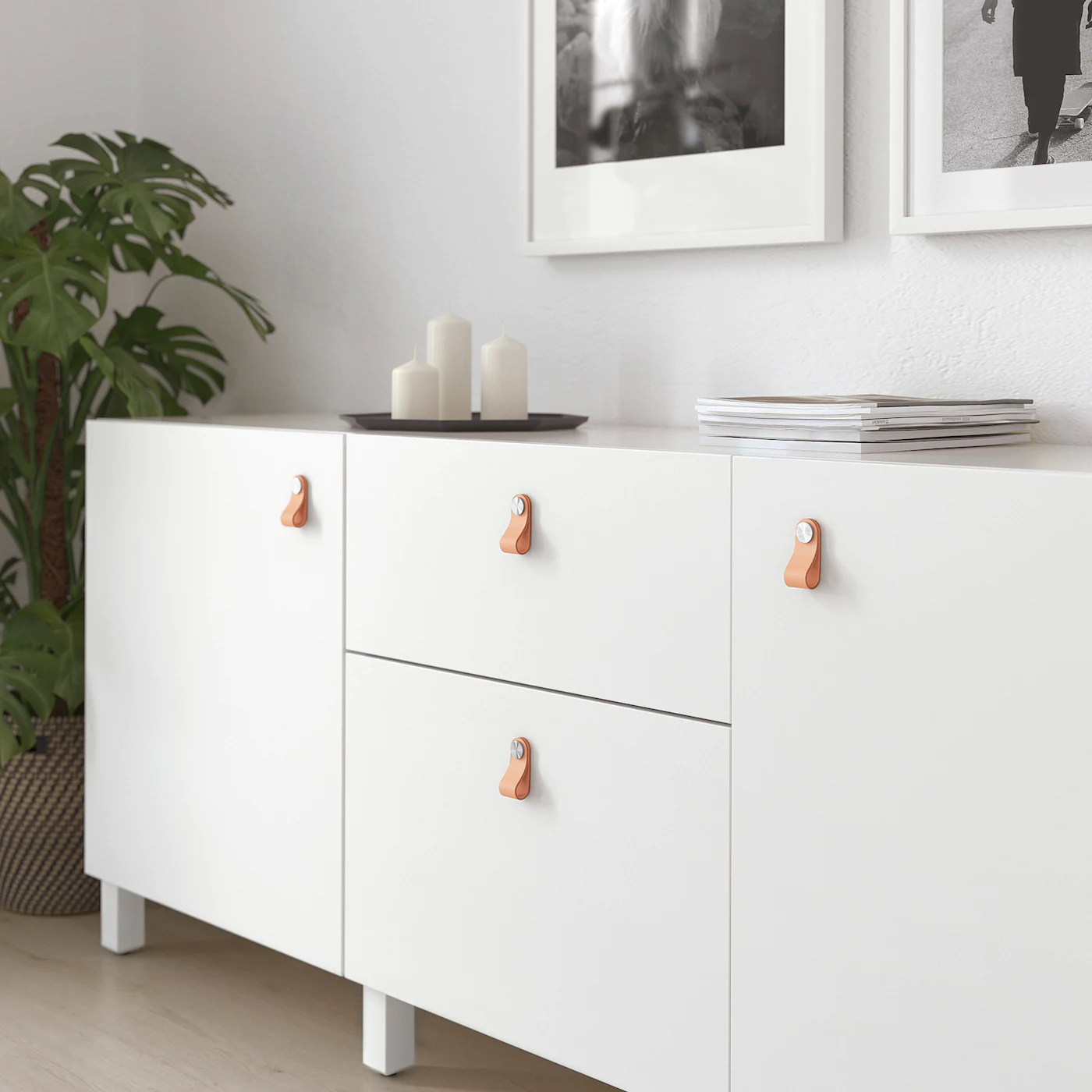 ÖSTERNÄS tanned leather handle feels soft to the touch and brings a warm and natural element in your home.