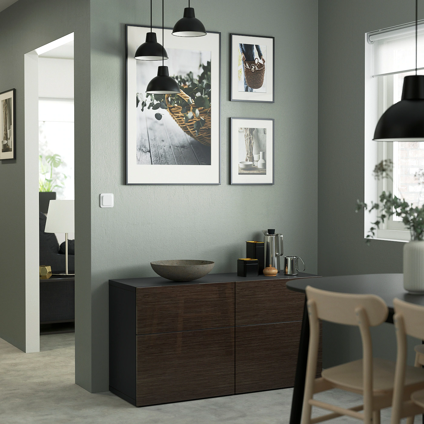 The drawers have integrated push-openers so that you can open them with just a light push. The shelves are adjustable so you can customize your storage as needed. Two drawers make it easy to keep your belongings organized. The shelves behind the doors give you even more storage space. Optimize and organize your BESTÅ storage with boxes and inserts that you like. Steady on uneven floors, thanks to the adjustable feet.Material