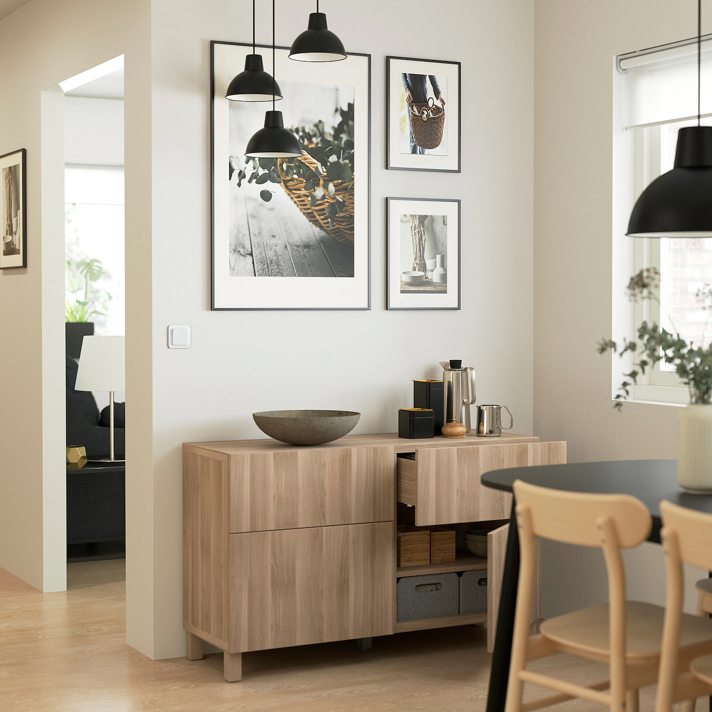 The drawers have integrated push-openers so that you can open them with just a light push. The shelves are adjustable so you can customize your storage as needed. Two drawers make it easy to keep your belongings organized. The shelves behind the doors give you even more storage space. Optimize and organize your BESTÃ… storage with boxes and inserts that you like.Material