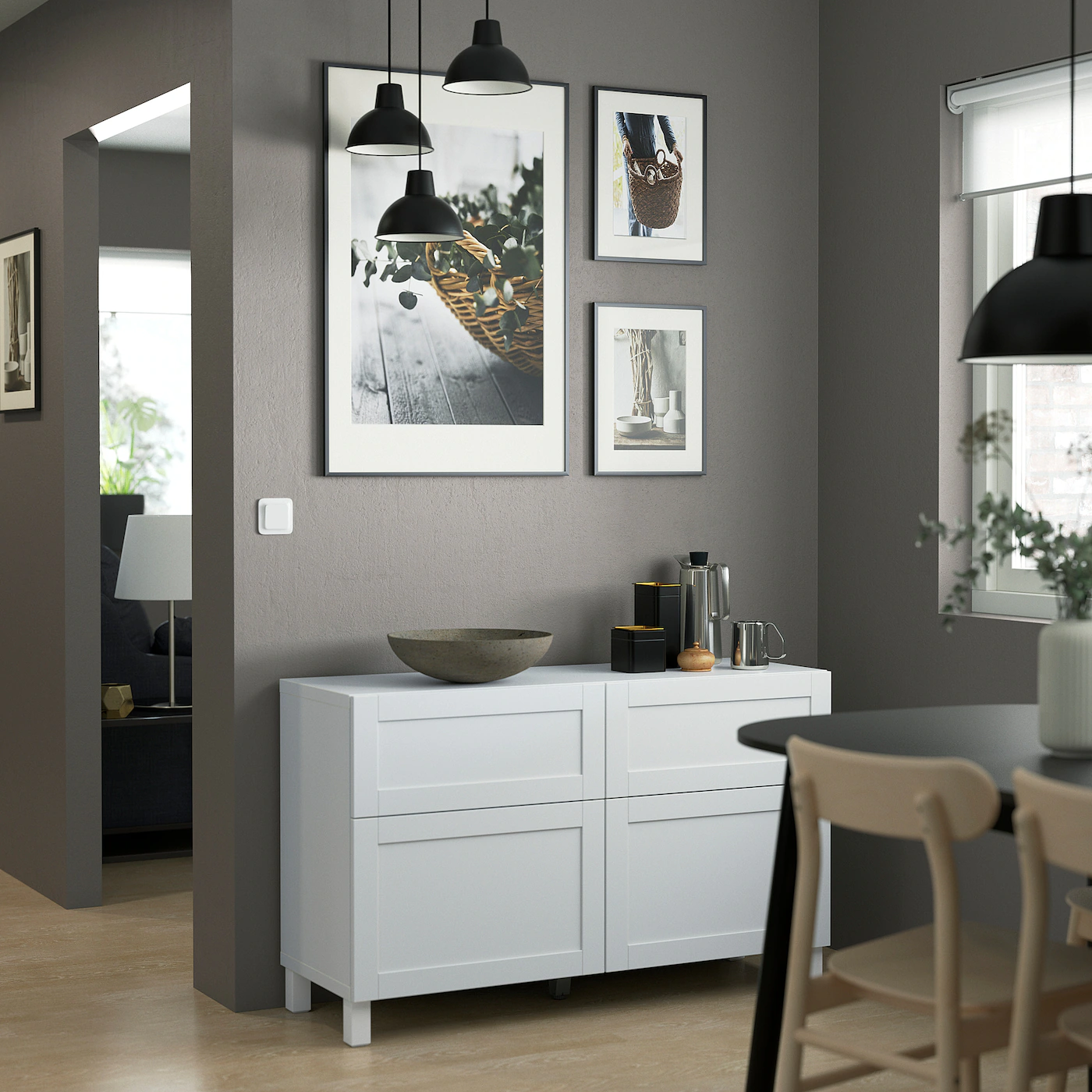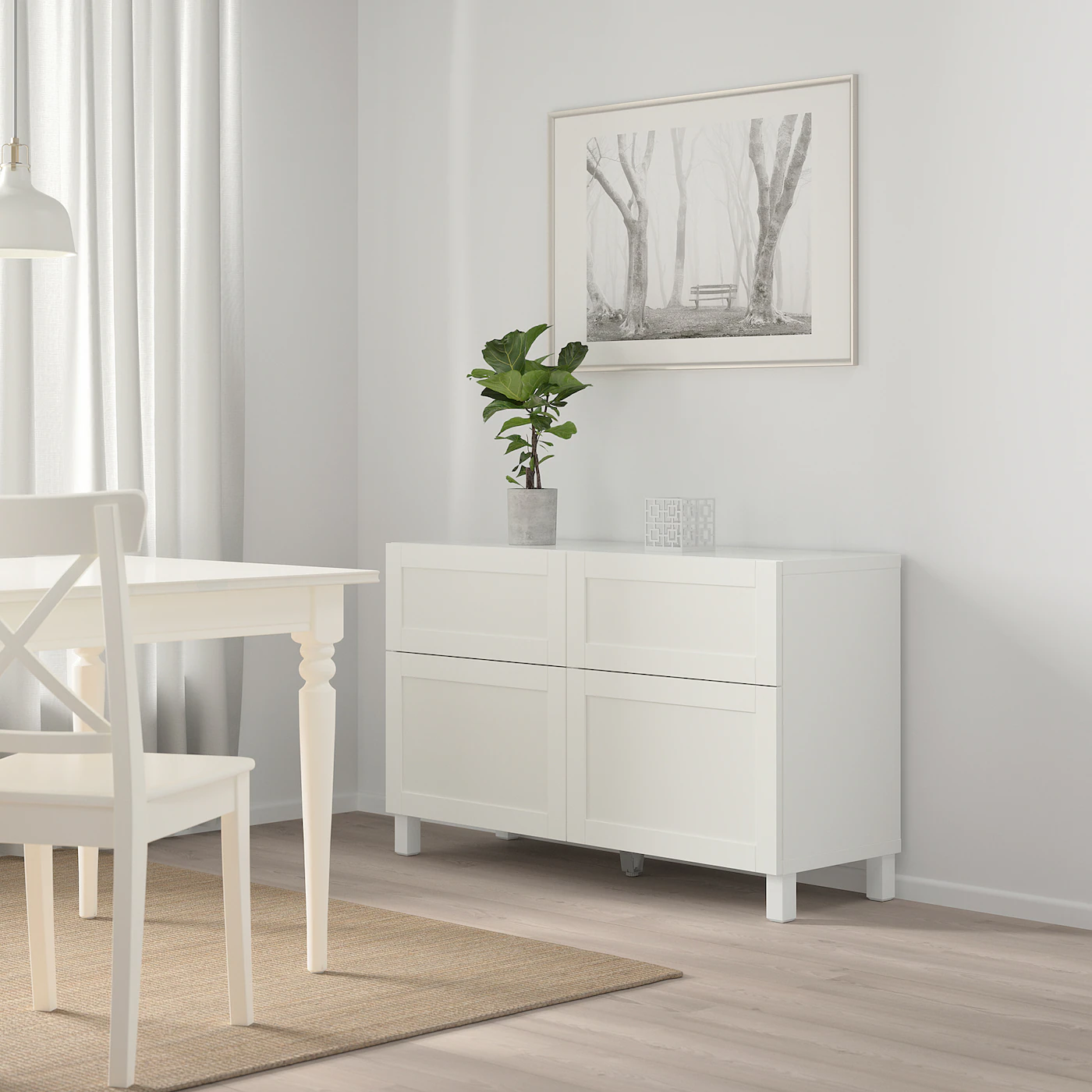 The drawers have integrated push-openers so that you can open them with just a light push. The shelves are adjustable so you can customize your storage as needed. Two drawers make it easy to keep your belongings organized. The shelves behind the doors give you even more storage space. Optimize and organize your BESTÅ storage with boxes and inserts that you like.Material