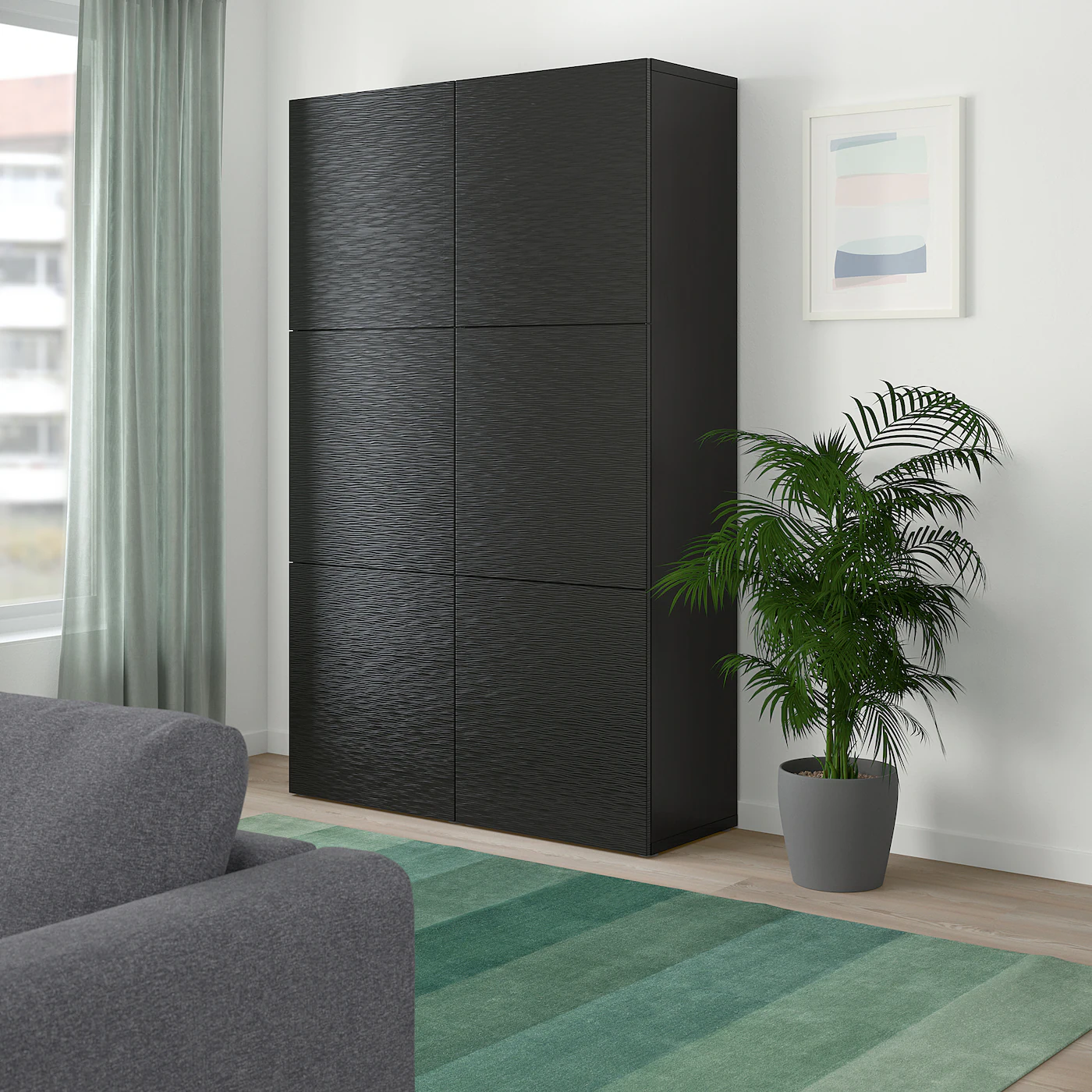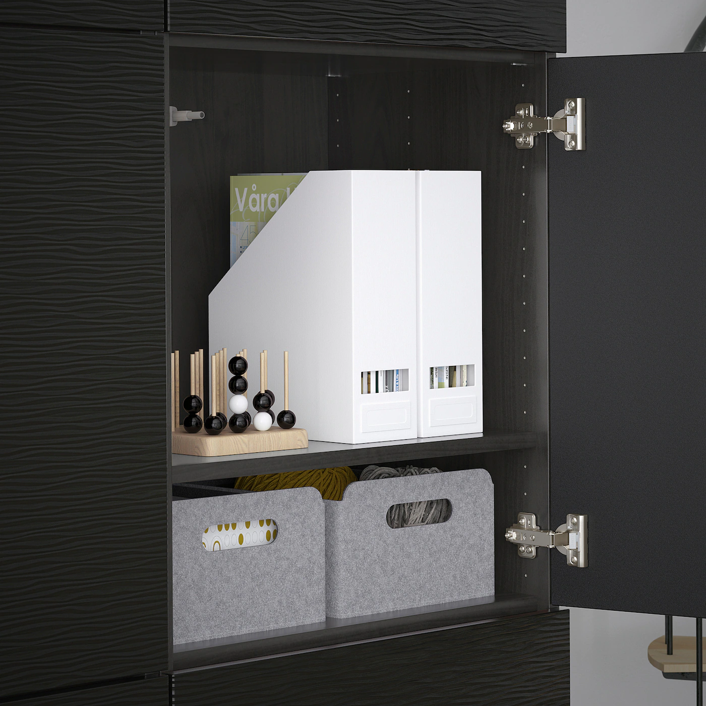 The shelves are adjustable so you can customize your storage as needed. You can choose to use either the soft-closing or push-open function. The push-opener lets you open the doors with just a light push, while the soft-closing hinges makes sure they close silently and softly. Adjustable hinges allow you to adjust the door horizontally and vertically. Optimize and organize your BESTÅ storage with boxes and inserts that you like.Material