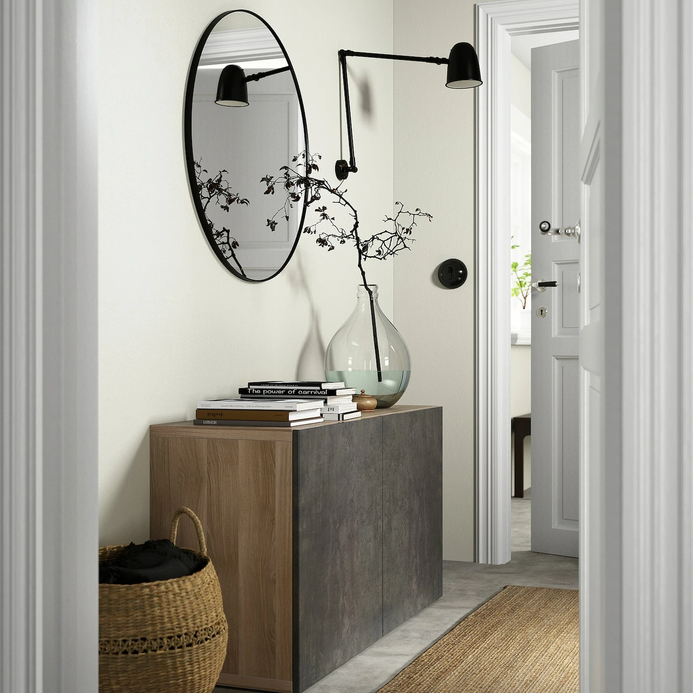 Adjustable hinges allow you to adjust the door horizontally and vertically. Adjustable shelves, so you can customize your storage as needed. Doors both protect and decorate – choose a door that matches well with your home and storage combination. The doors open with a light push and close silently and softly, as the hinges have both push-open and soft-closing functions. Optimize and organize your BESTÅ storage with boxes and inserts that you like. Steady on uneven floors, thanks to the adjustable feet.Material