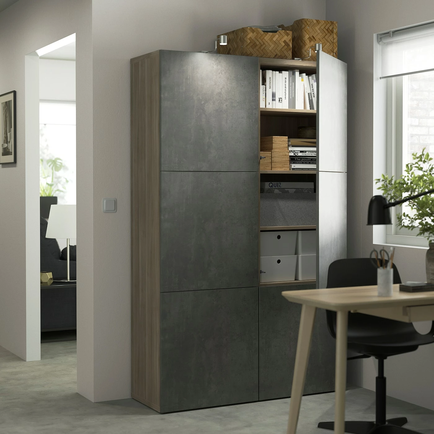 Doors both protect and decorate – choose a door that matches well with your home and storage combination. The shelves are adjustable so you can customize your storage as needed. You can choose to use either the soft-closing or push-open function. The push-opener lets you open the doors with just a light push, while the soft-closing hinges makes sure they close silently and softly. Adjustable hinges allow you to adjust the door horizontally and vertically. Optimize and organize your BESTÅ storage with boxes and inserts that you like.Material
