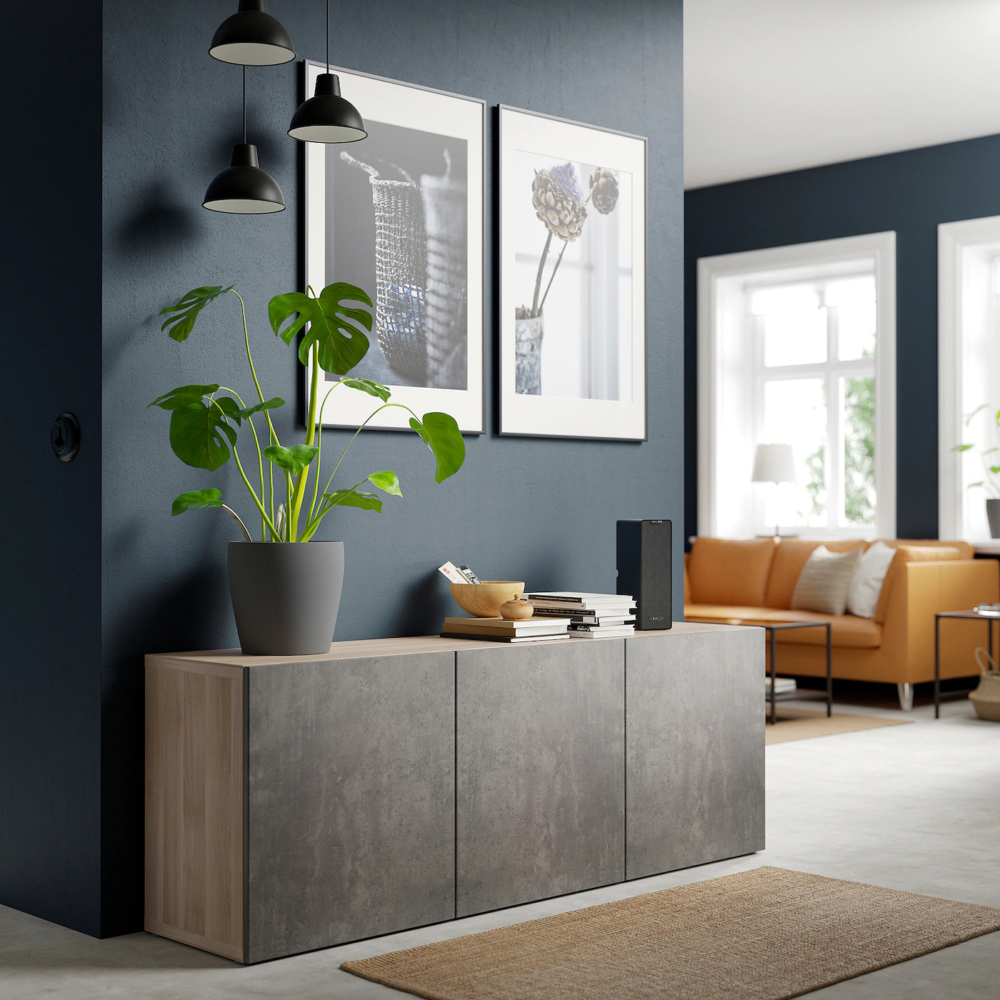 Adjustable hinges allow you to adjust the door horizontally and vertically. Adjustable shelves, so you can customize your storage as needed. Doors both protect and decorate – choose a door that matches well with your home and storage combination. The doors open with a light push and close silently and softly, as the hinges have both push-open and soft-closing functions. Optimize and organize your BESTÃ… storage with boxes and inserts that you like. Steady on uneven floors, thanks to the adjustable feet.Material