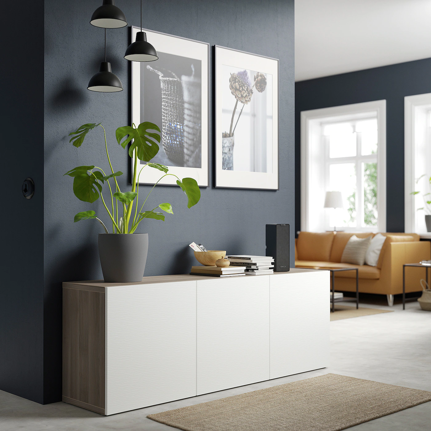 Adjustable shelves, so you can customize your storage as needed. Doors both protect and decorate – choose a door that matches well with your home and storage combination. The doors open with a light push and close silently and softly, as the hinges have both push-open and soft-closing functions. Optimize and organize your BESTÅ storage with boxes and inserts that you like. Steady on uneven floors, thanks to the adjustable feet.Material