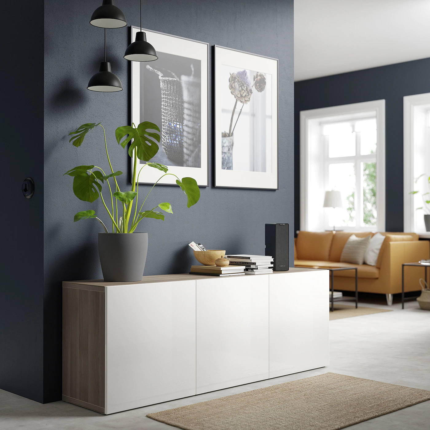 IKEA BESTÅ Storage Combination With Doors Walnut Effect Light Gray/Selsviken Highgloss/white 70 7/8×16 1/2×25 5/8 ” Blackbrown Hedeviken/mejarp/dark Brown Stained Oak Veneer