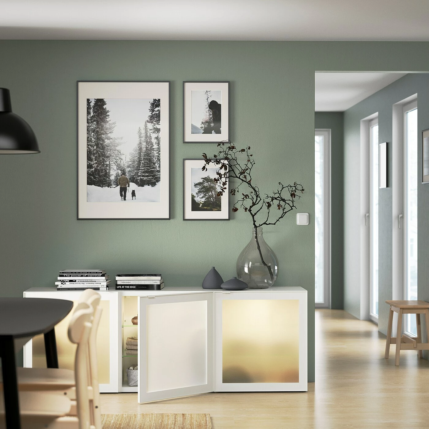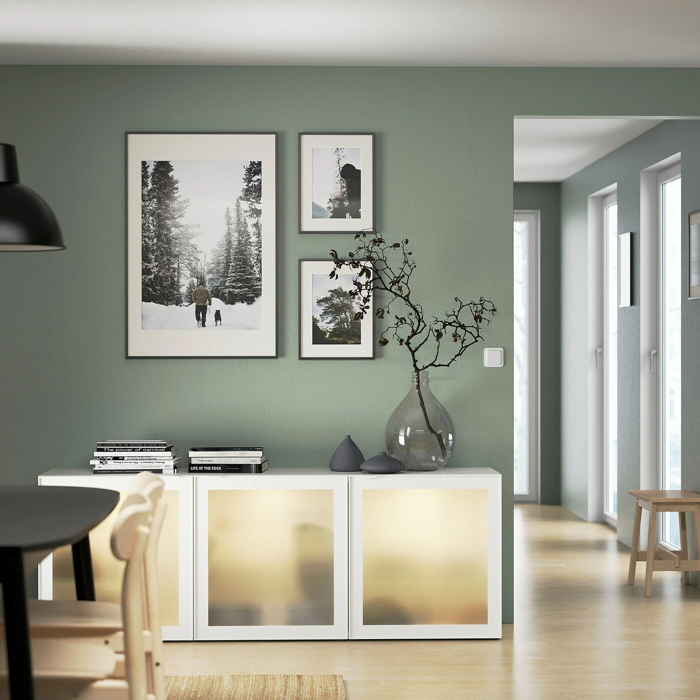 Adjustable shelves, so you can customize your storage as needed. Glass-door cabinet keeps your favorite items free from dust but still visible. Doors both protect and decorate – choose a door that matches well with your home and storage combination. The doors open with a light push and close silently and softly, as the hinges have both push-open and soft-closing functions. Optimize and organize your BESTÅ storage with boxes and inserts that you like. Steady on uneven floors, thanks to the adjustable feet.Material