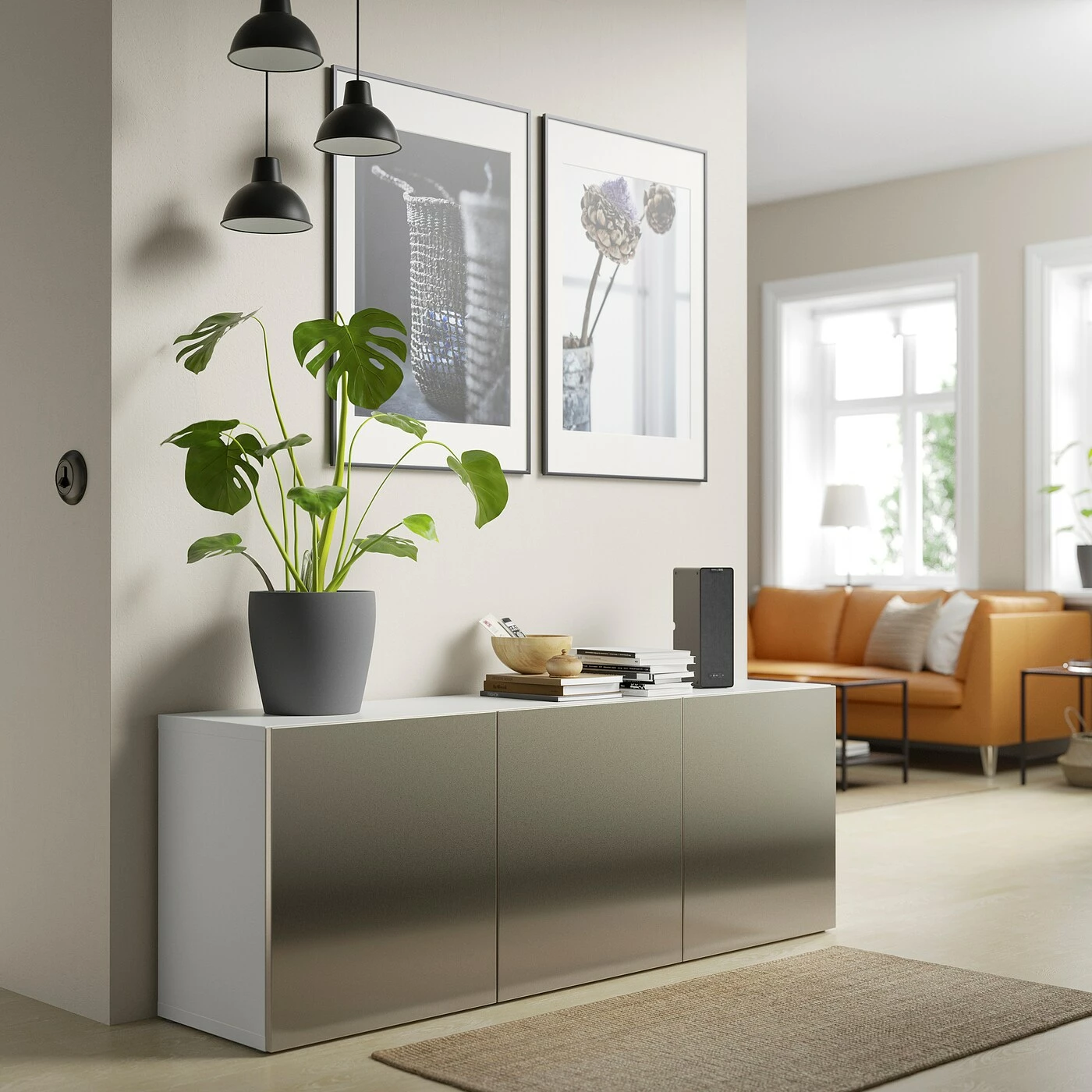 Adjustable hinges allow you to adjust the door horizontally and vertically. Adjustable shelves, so you can customize your storage as needed. Doors both protect and decorate – choose a door that matches well with your home and storage combination. The doors open with a light push and close silently and softly, as the hinges have both push-open and soft-closing functions. Optimize and organize your BESTÅ storage with boxes and inserts that you like. Steady on uneven floors, thanks to the adjustable feet.Material