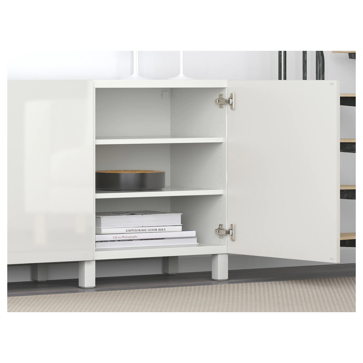 Adjustable shelves, so you can customize your storage as needed. Doors both protect and decorate – choose a door that matches well with your home and storage combination. The doors open with a light push and close silently and softly, as the hinges have both push-open and soft-closing functions. Optimize and organize your BESTÅ storage with boxes and inserts that you like.Material