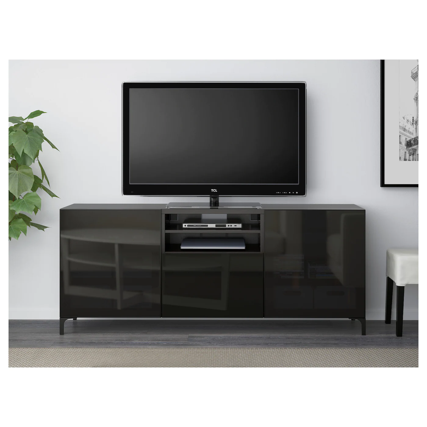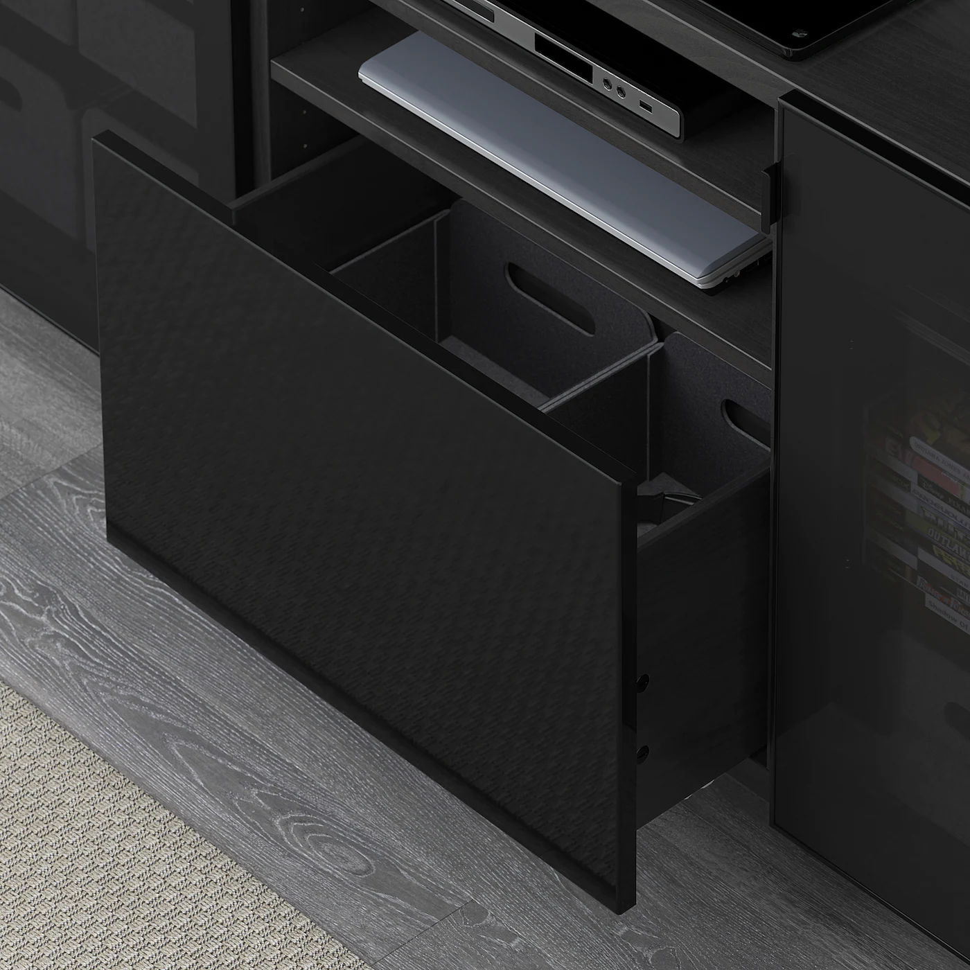 IKEA BESTÅ TV Unit With Drawers Blackbrown/Selsviken High Gloss/black Smoked Glass 70 7/8×15 3/4×29 1/8 “