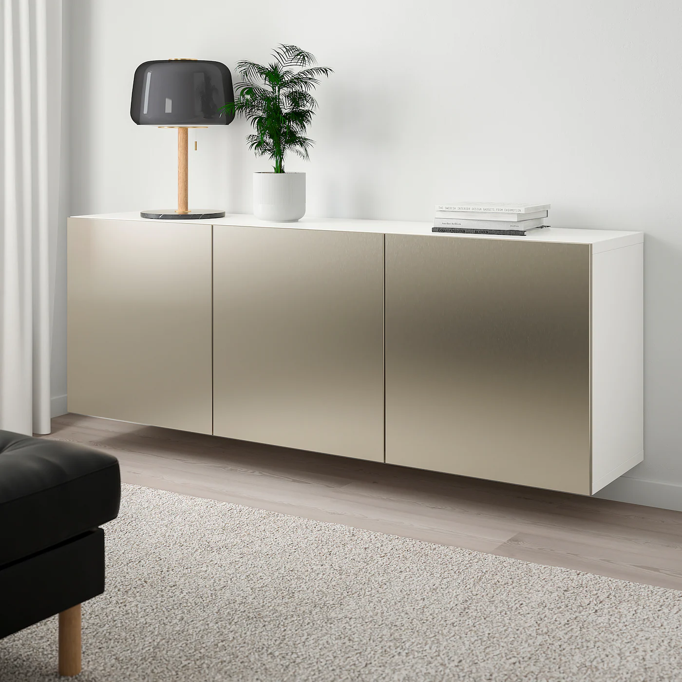 A wall-mounted solution creates a clean, modern look and makes for easy cleaning of the floor underneath. Adjustable shelves, so you can customize your storage as needed. Adjustable hinges allow you to adjust the door horizontally and vertically. Doors both protect and decorate – choose a door that matches well with your home and storage combination. Optimize and organize your BESTÅ storage with boxes and inserts that you like.Material