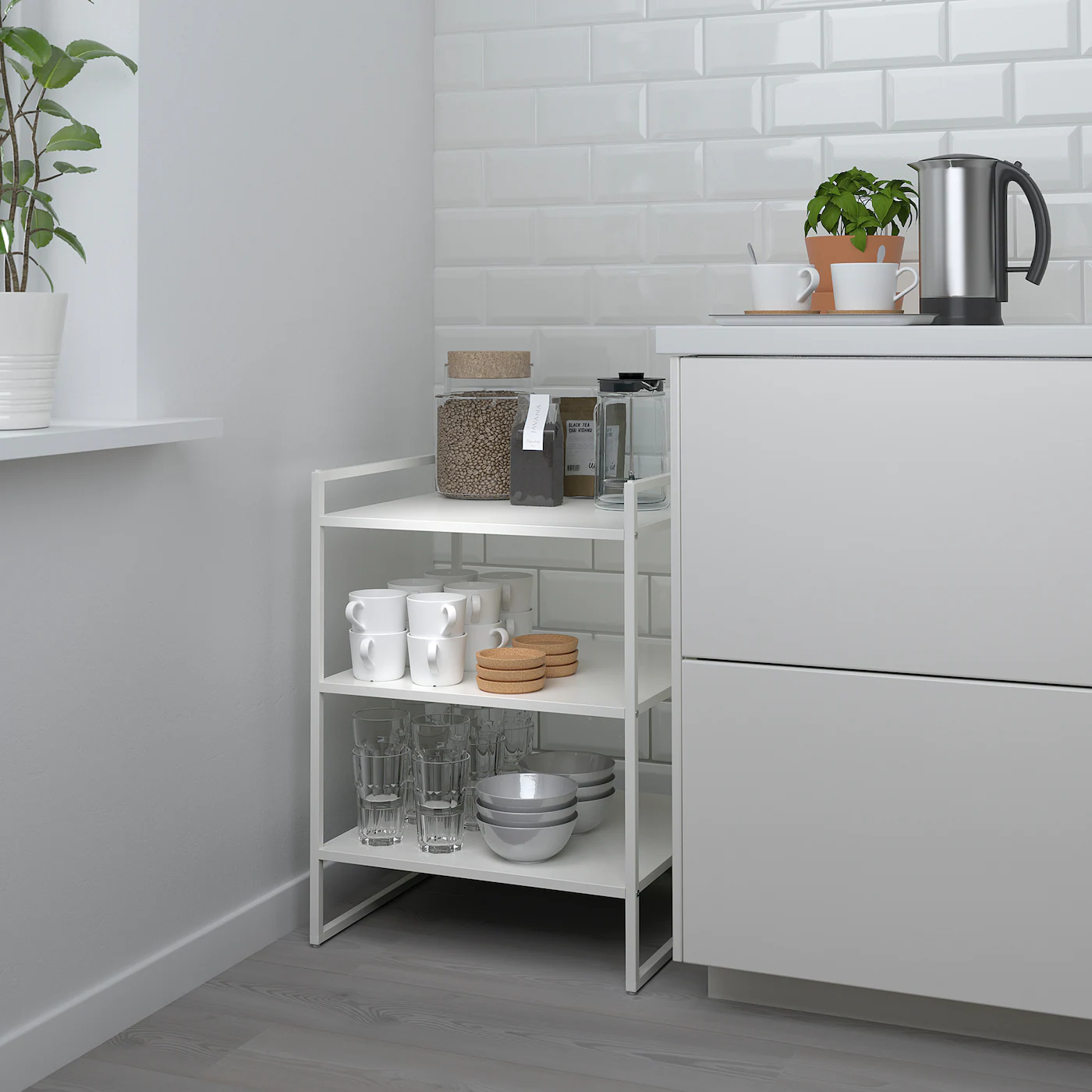 The shelf unit is durable, easy to clean and protected from rust, as it is made of powder-coated steel.Steel, Epoxy/polyester powder coating