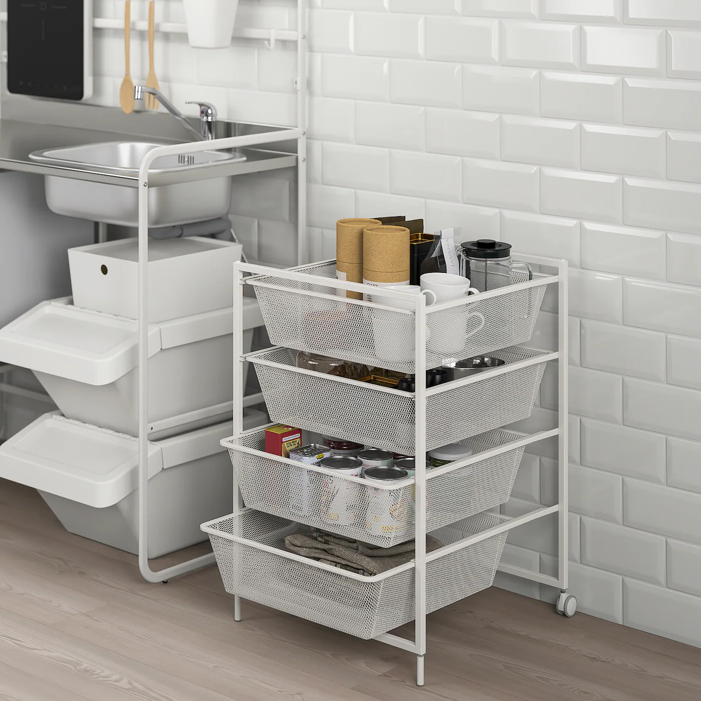 A practical storage combination that helps you keep things organized throughout the home, also in humid areas like bathrooms.