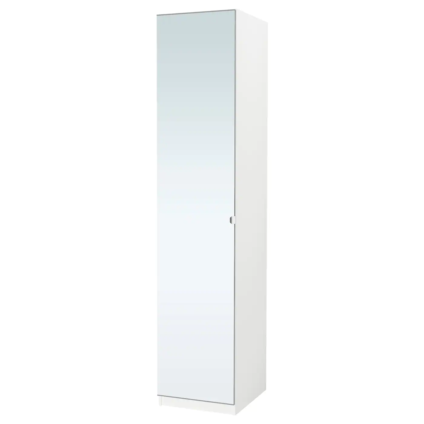 You can easily adapt this ready-made PAX/KOMPLEMENT combination to suit your needs and taste using the PAX planning tool. Adjustable feet make it possible to compensate for any irregularities in the floor. Hinges with integrated dampers catch the door and close it slowly, silently and softly With the PAX Planner, you can easily complete your combination with integrated lighting. After choosing the light source, the planner will work out which accessories you need to complete the solution. A room immediately feels larger, lighter and more spacious by choosing mirror doors. A great way of transforming a narrow hallway or a tiny bedroom.Material