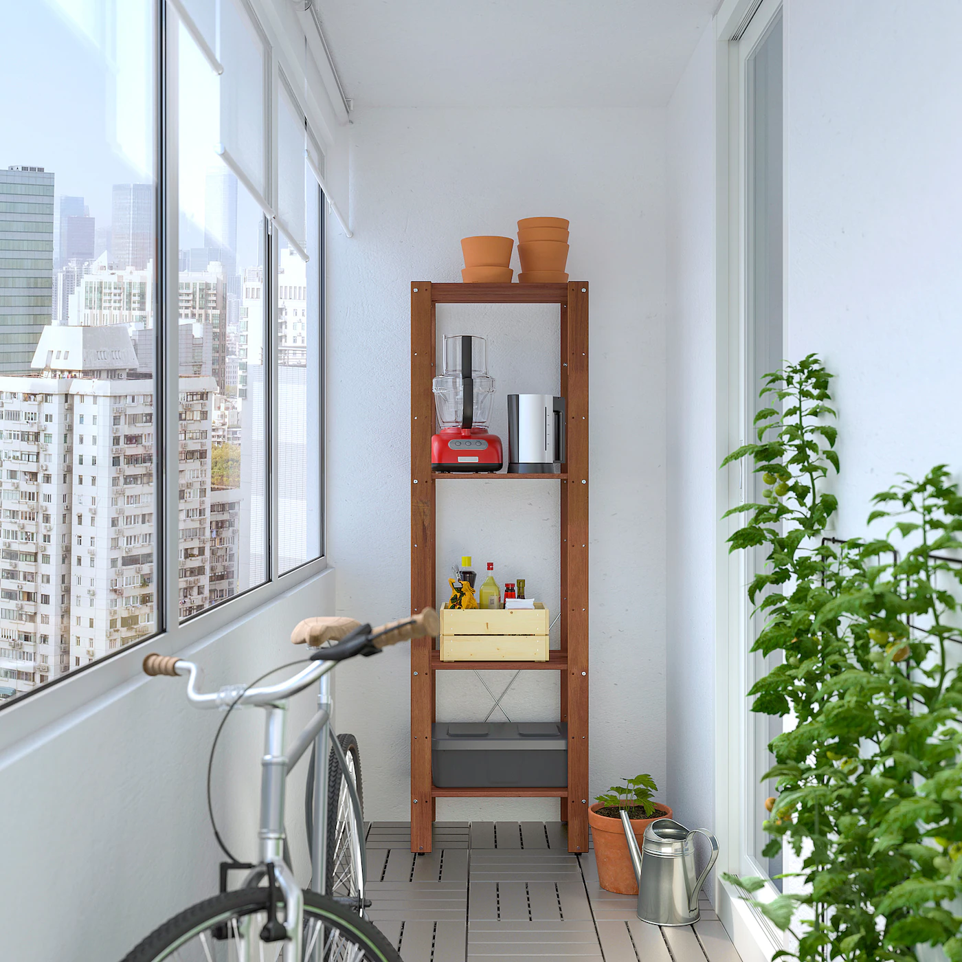 TORDH shelving units take care of your storage needs on the balcony or terrace, and you can easily complete with more units if your storage needs grow.
