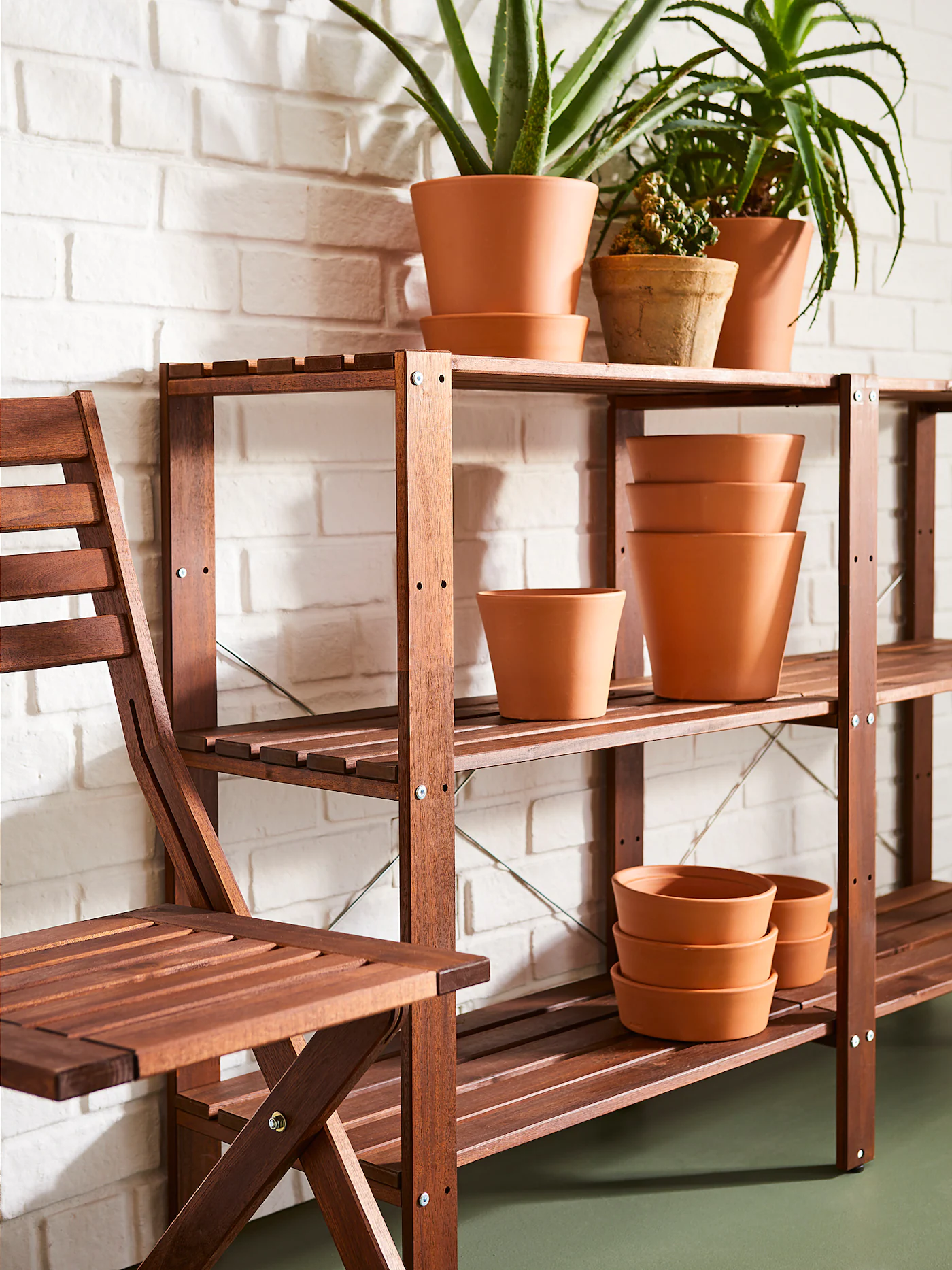 TORDH shelving units take care of your storage needs on the balcony or terrace, and you can easily complete with more units if your storage needs grow.
