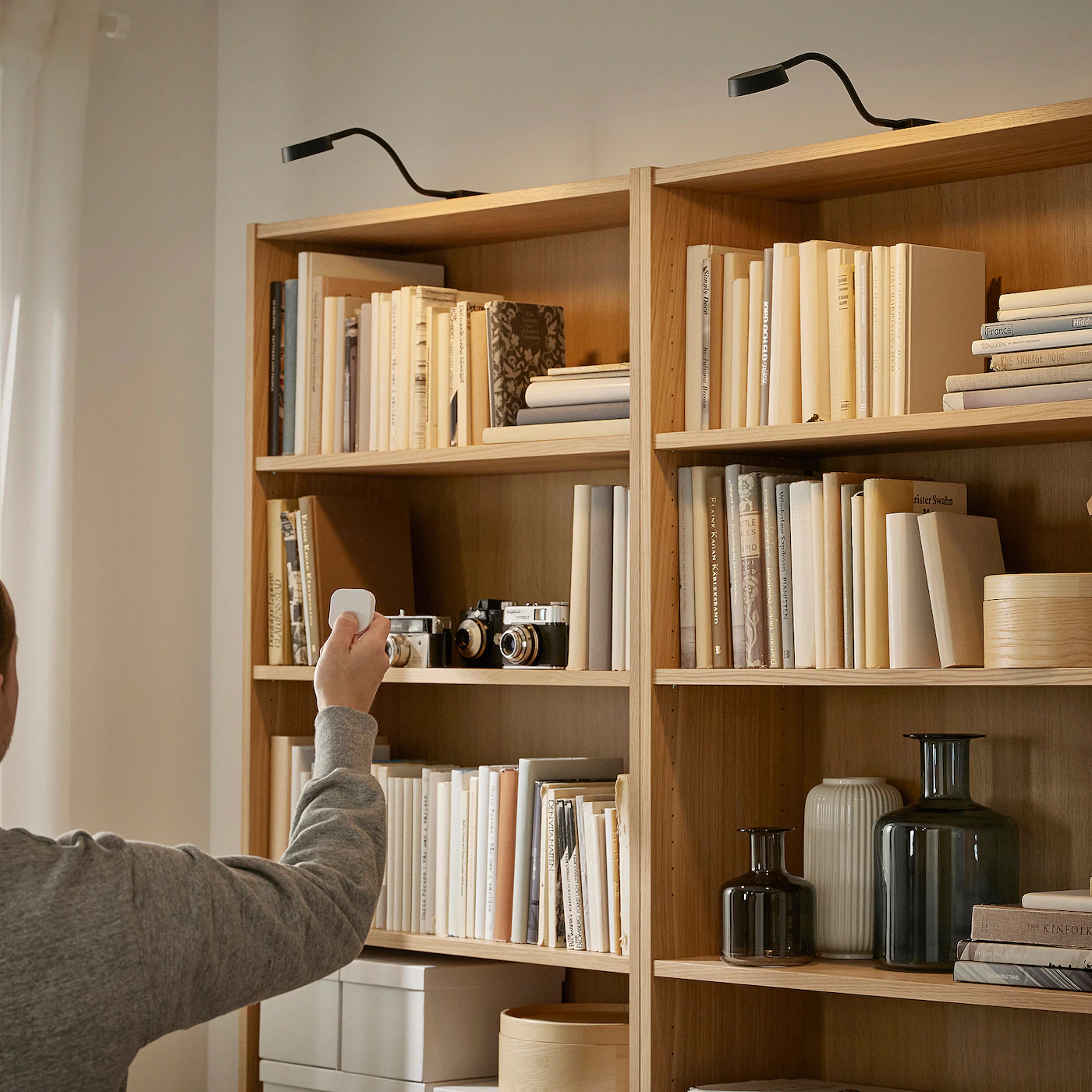 You can easily direct the light where you like since the flexible gooseneck arm can be bent and angled – perfect when it’s time for homework, arts and crafts or cuddling up with a good book. Spreads a soft light that creates a cosy atmosphere in the room. The bracket makes it possible to slide the lamp back and forth. You easily attach it with screws – or with double-sided adhesive tape on glass and metal surfaces. You can dim your lighting wirelessly and easily adapt the lighting based on activity. The LED light source consumes up to 85% less energy and lasts 20 times longer than incandescent bulbs. You can easily direct the light where you like since the arm can be bent 180° and the lamp head angled 90°.Material