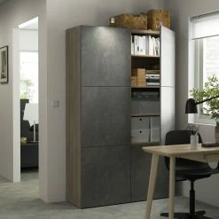 IKEA BESTÅ Storage Combination With Doors Blackbrown/Hedeviken Oak Veneer 47 1/4×16 1/2×76 “