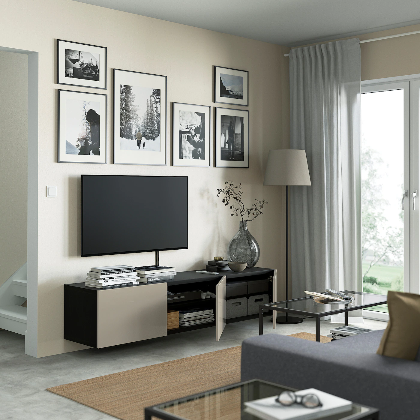 IKEA BESTÅ TV Unit With Doors Blackbrown/Glassvik Smoked Glass 70 7/8×16 1/2×15 “