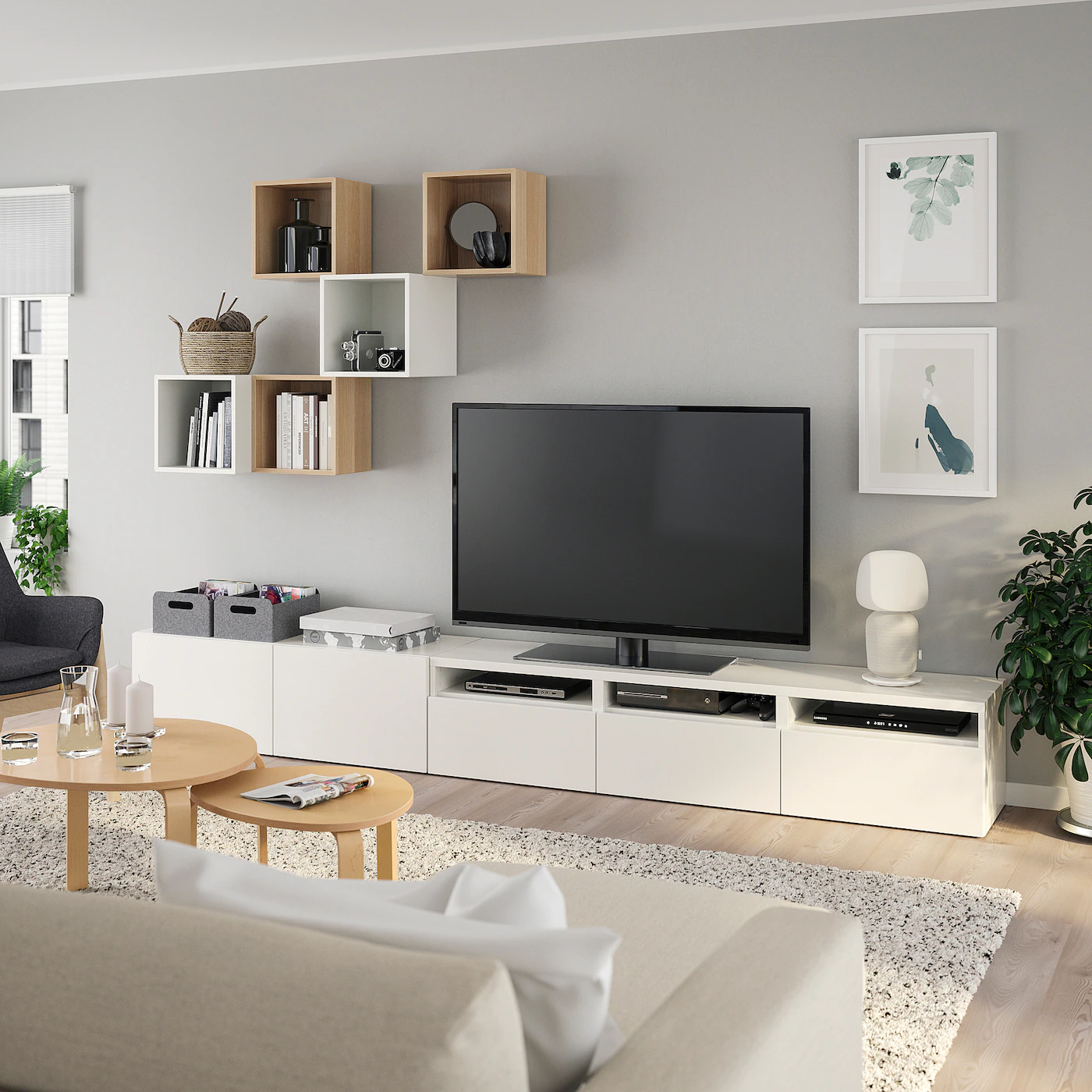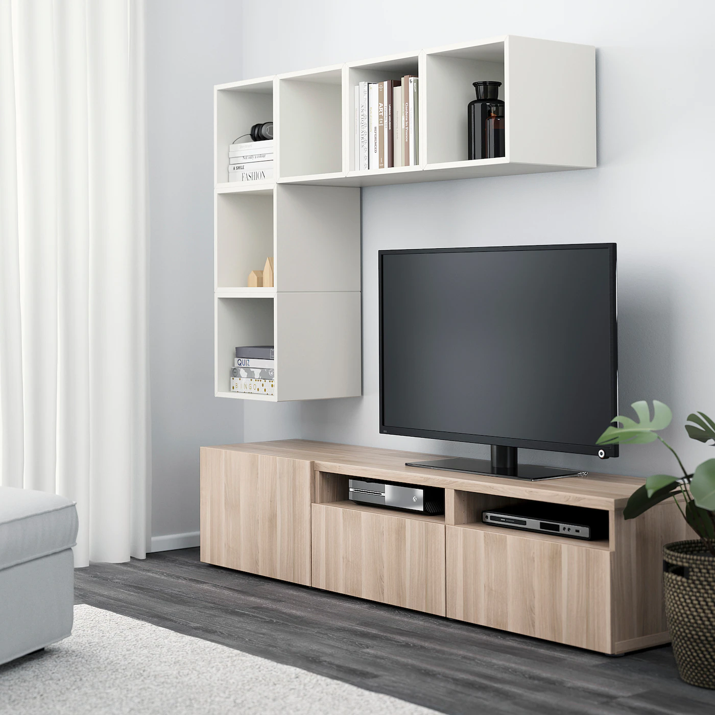 IKEA BESTÅ / EKET TV Storage Combination White/white Stained Oak Effect 118 1/8×16 1/2×82 5/8 “