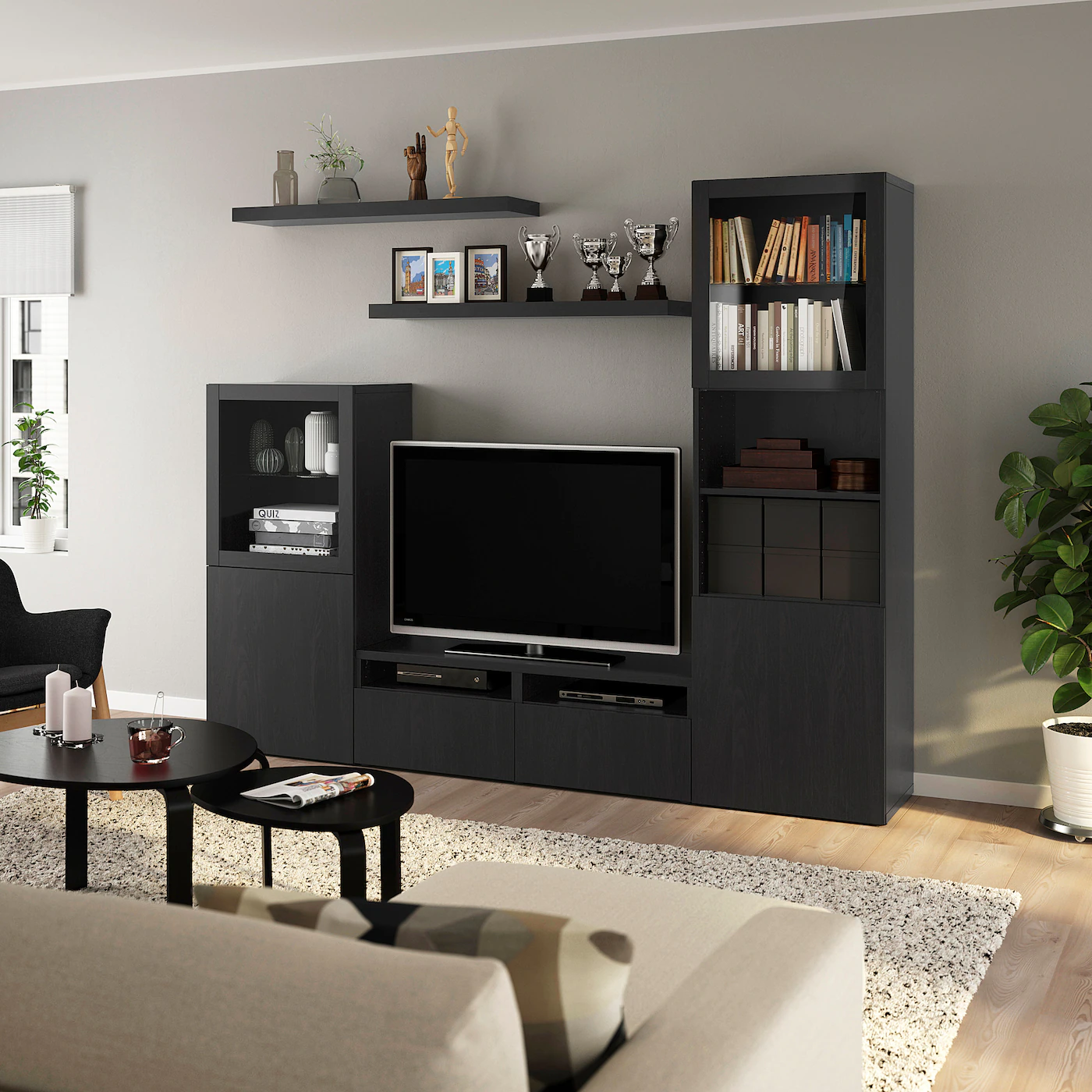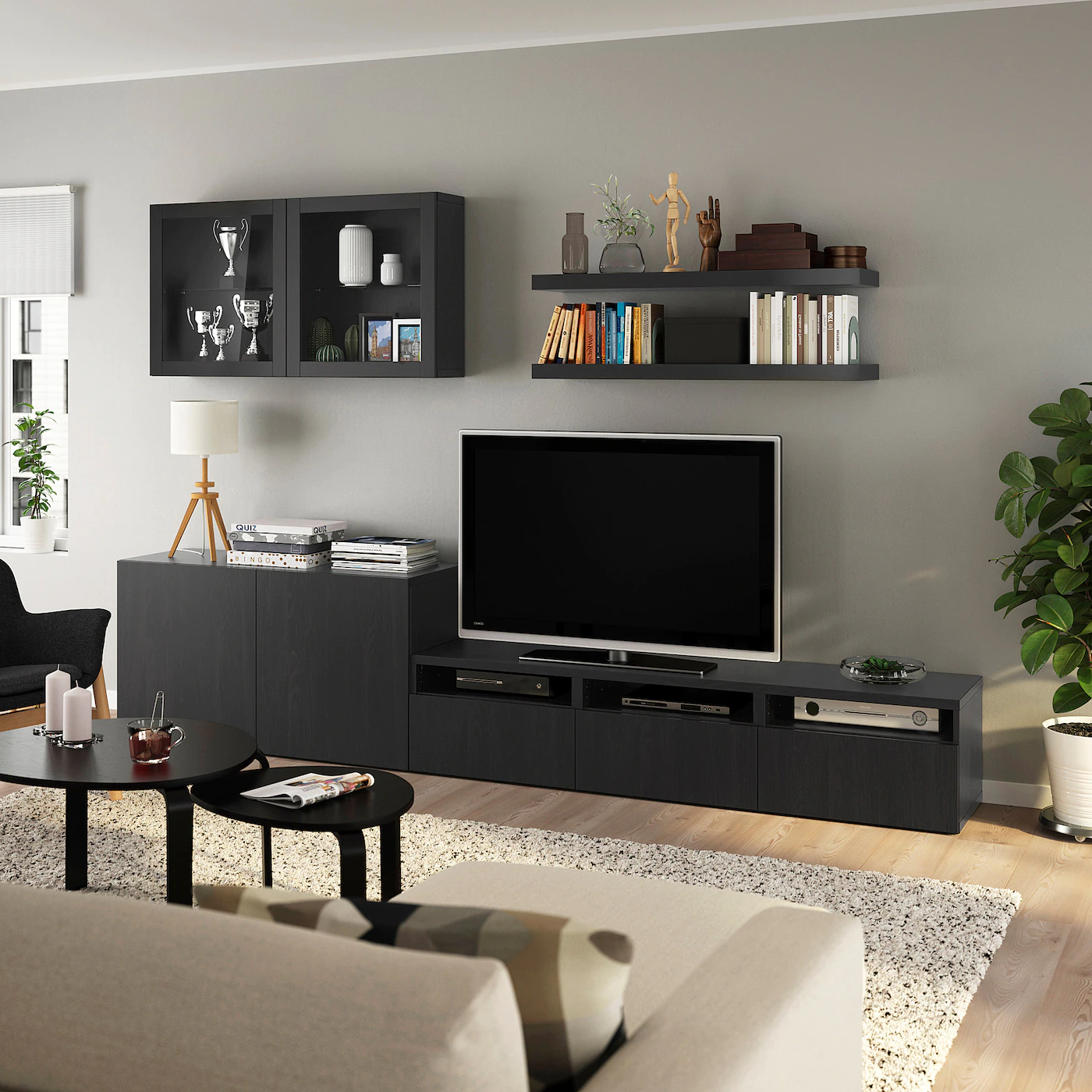 IKEA BESTÅ / LACK TV Storage Combination Blackbrown 94 1/2×16 1/2×76 “
