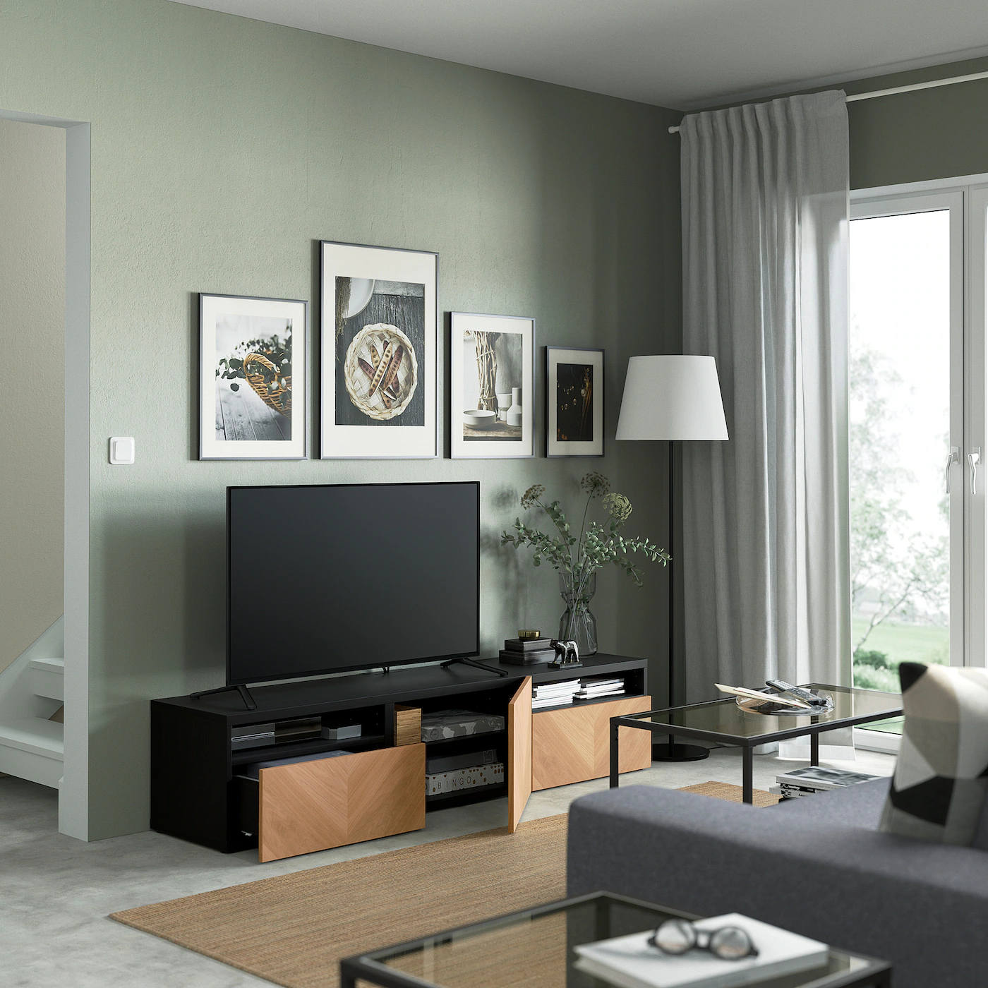 IKEA BESTÅ TV Unit With Drawers And Door Blackbrown/Hedeviken Oak Veneer 70 7/8×16 1/2×15 3/8 “