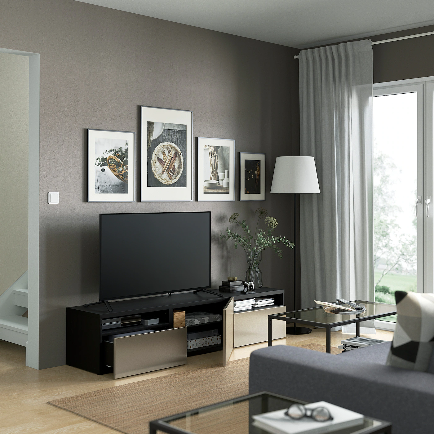IKEA BESTÅ TV Unit With Drawers And Door Blackbrown/Lappviken Light Graybrown 70 7/8×16 1/2×15 3/8 “