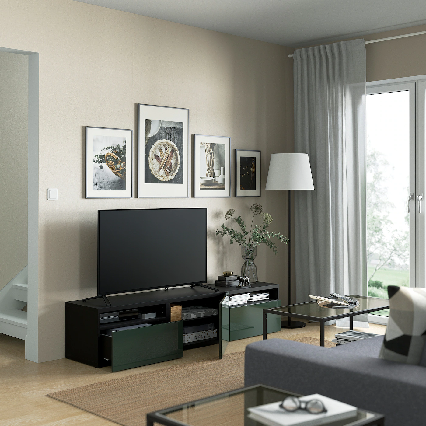 IKEA BESTÅ TV Unit With Drawers And Door Blackbrown/Kallviken Dark Gray 70 7/8×16 1/2×15 3/8 “